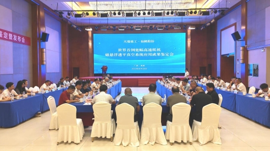 2025年8月28日,由中国轻工业联合会组织的天瑞重工、仙鹤股份“世界首例宽幅高速纸机磁悬浮真空泵系统应用成果鉴定会暨成果发布会”在广西来宾顺利召开。